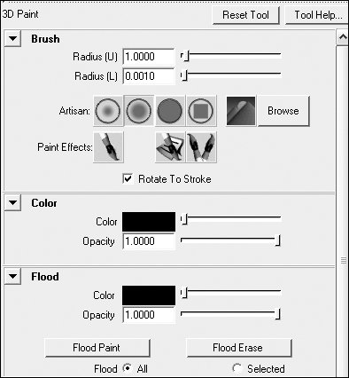 The 3D Paint Tool Settings window opens (Figure 14.122).