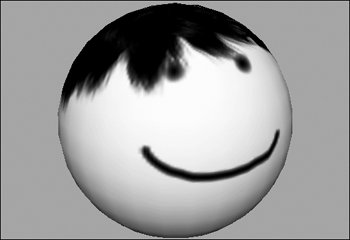 Figure 14.129. Hair has been painted on the sphere by using one of the Paint Effects brushes.  | 6. | Clear the surface texture by clicking the Flood Erase button under the Flood section.
