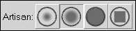 | Tips After using a Paint Effects brush, you can return to a normal brush by clicking one of the Brush Profile buttons next to Artisan in the 3D Paint Tool Settings window (Figure 14.130). Figure 14.130. To return to a normal brush, choose from one of the profiles of the Artisan brushes.  By decreasing the opacity in the 3D Paint Tool settings, you can paint on a surface but still see the color beneath your brush strokeshelpful if you're trying to make a surface appear dirty. You can use the 3D Paint Tool to paint areas roughly to mark the different parts of a surface. You can then open the image file (which is created once you save the scene) in Adobe Photoshop and paint the details there. You can use the same steps for other attributes, such as transparency and displacement. Just select the desired attribute from the drop-down menu under File Textures. Using Adobe Photoshop In Maya, you can create layered PSD (Photoshop Document) files or use PSD image files with layers from Adobe Photoshop for textures. Being able to use layered files makes it simpler to manage complex textures that require individual image maps for one or more channels in a single shader. To create layered PSD files in Maya: 1. | Select an object, and choose Texturing > Create PSD Network.