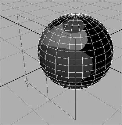 Figure 14.127. A smiley face has been painted on the sphere with three brush strokes.  | To use the 3D Paint tool: 1. | Continue with the sphere from the previous task.