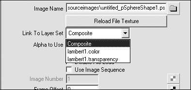 Figure 14.139. The PSD file node is used to import a PSD document with layers instead of as a flat image (as the file node does).  A PSD file node appears as psdFileTex1 in the Work Area (Figure 14.140).