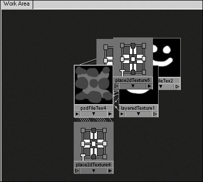 Figure 14.146. Convert To Layered Texture creates psdFileTex nodes for each layer set in the PSD file and connects them to a layeredTexture node.  | 3. | Click and drag the nodes so they don't overlap (Figure 14.147).