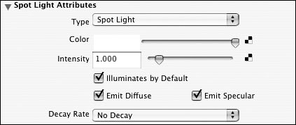 | 4. | In the Attribute Editor, set Intensity to .25 or less (Figure 15.30).