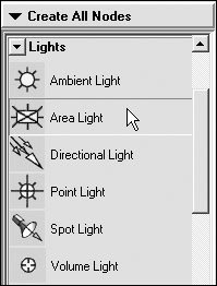 | 2. | In the Hypershade, select Area Light in the Lights section of the Create bar (Figure 15.31).