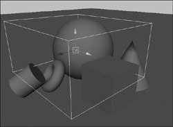Figure 15.29. Set the Ambient Shade attribute to 0.  The 0 value sends light evenly over the entire scene. Notice that the objects blend together flatly (Figure 15.27).