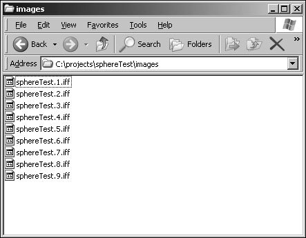 Figure 16.36. A batch render creates one or more files in the current project's images folder.  To view a rendered image in FCheck: 1. | Choose File > View Image (Figure 16.37).