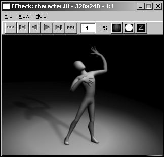 Figure 16.38. FCheck allows you to view rendered images and image sequences.  | To view a rendered image sequence in FCheck: 1. | Choose File > View Sequence.