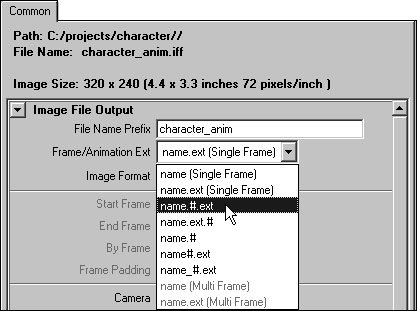 | 3. | Click the Frame/Animation Ext drop-down menu, and select name.#.ext (Figure 16.41).