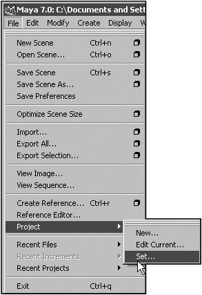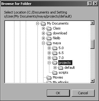 Figure 1.41. The project you set as the working project determines where Maya places saved files.  | 2. | Browse to and select the folder for the project you want to use.