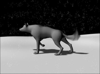 | Maya's render layers allow you to render different parts of your scene independently, either to different files or to different layers of an Adobe Photoshop PSD file. For example, if you're rendering an animation from a stationary camera, you can render a single frame of the background, and then render a character alone, to be composited onto the background later. Render layers can also let you access the functionality of more than one renderer for a scenefor example, hardware-rendered particles on top of a software-rendered background (Figure 16.105). Figure 16.105. Here the snow particles are on their own layer, allowing them to be rendered using the Maya Hardware renderer while the wolf is rendered with the Maya Software renderer.  You can also use render layers to separate the visual components of an object: for example, the diffuse, specular, and shadow. By rendering these components to separate images, you can make quick changes in a compositing program rather than having to re-render the entire 3D scene. To use render layers: 1. | Create a scene with a sphere resting on a plane and a spot light aimed at the sphere.