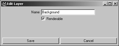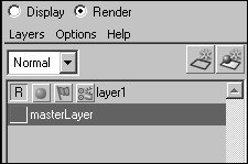 Figure 16.108. When you create a layer, the masterLayer for the scene is also displayed in the Layer Editor.  | 7. | Double-click layer1 in the Layer Editor, and enter the name Background in the Edit Layer dialog box (Figure 16.109).