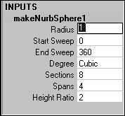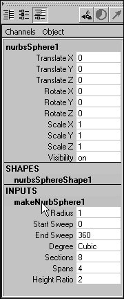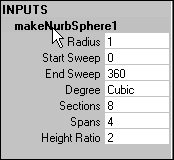 | 2. | Click the makeNurb(Object) label under the Inputs heading in the Channel Box.