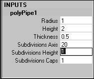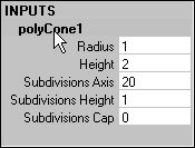 Figure 3.46. Click the poly(Object) label in the Inputs section of the Channel Box to display the primitive's attributes.  | 3. | Click the Subdivisions Height field to select the number there (Figure 3.47).