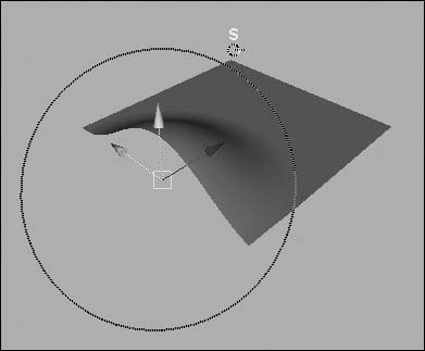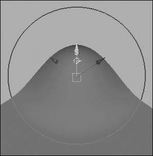 Figure 4.75. Add a softMod to a surface. | 4. | Select the y translate axis of the manipulator, and drag it up (Figure 4.76).
