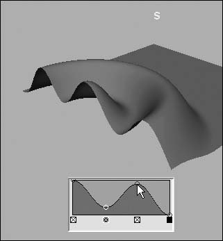 Figure 4.83. The softMod now has a smooth, wavelike shape.  You can see the results of editing the falloff curve on the surface of the softMod you created.
