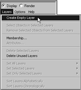 | 2. | From the Layer Editor's Layers menu, select Create Empty Layer (Figure 5.42), or click the Create Layer icon .