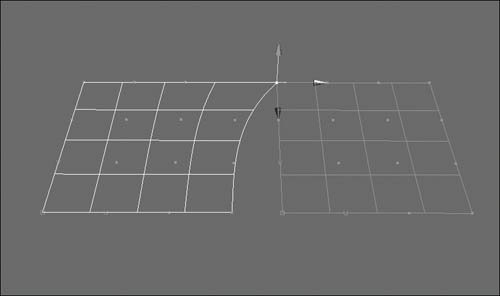 The pivot point of the selected CV snaps to the CV on the second plane that's closest to where you clicked with your middle mouse button (Figure 6.48).