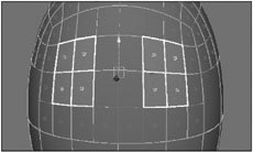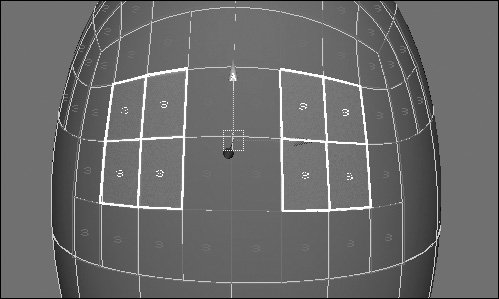 | 7. | Select two groups of faces where you want the eyes to be ( Figure 9.58 ), and refine them twice (Figure 9.59 ).