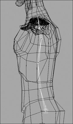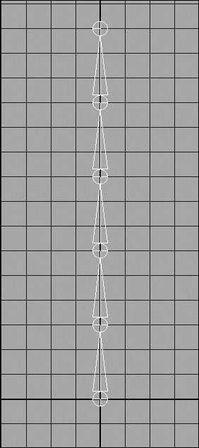 Figure 10.70. It generally helps to have the spine follow the curve of the back. Any number of bones may be used.  | | | 3. | From the Front view, build a three-bone arm with joints at the shoulder, elbow, wrist and hand (Figure 10.71).