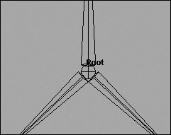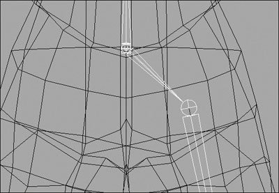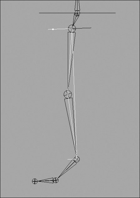 Figure 10.64. Use Knee Pointer to avoid the common IK problem of directing where the solver places the middle joints.  This option lets you aim the knee by moving the pointer. Because Knee Pointer is parented to the foot control, by default the knee rotates with the foot as well (Figure 10.65).