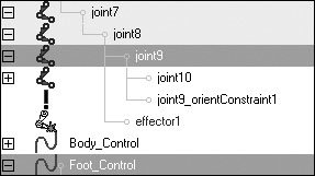 | 8. | Select Foot Control, -select the IK handle, and choose Constrain > Parent.