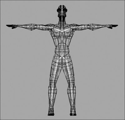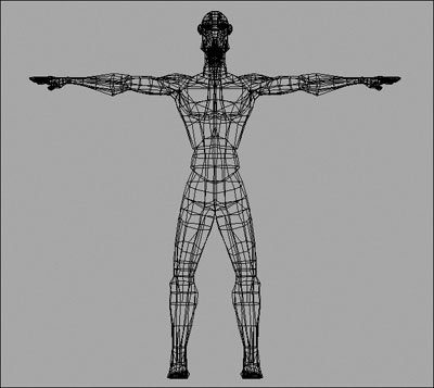 Figure 10.69. If you intend to use FBIK, you should model your character in the appropriate T pose.  Characters should have their arms out flat, with palms facing straight down.