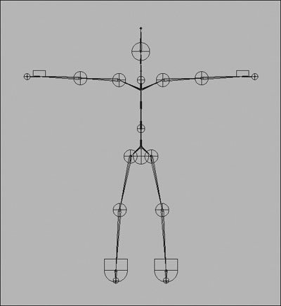 Figure 10.74. Everything is mirrored and ready to go. This skeleton contains the bare minimum for an FBIK setup.  Now you have a skeleton with a suitable hierarchy for FBIK or another type of rig.