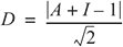 D' (normalized distance from the main sequence) represents the D metric normalized to the range [0,1]. It is perhaps a little more convenient to calculate and to interpret. The value 0 represents a component that is coincident with the main sequence. The value 1 represents a component that is as far from the main sequence as is possible. D'= |A + I - 1| |