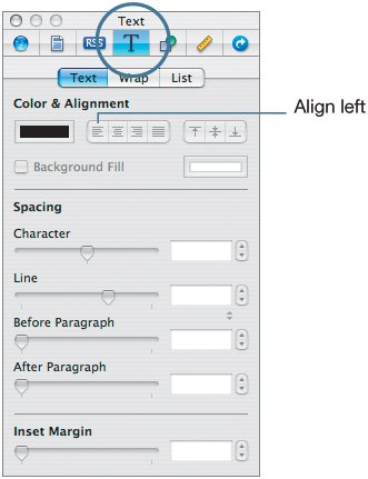 Font panel  | | | 12. | Click the Inspector button to open the Page Inspector; then click the T button at the top of the Inspector to find the text alignment controls. Choose align left for Jennifer's home page.