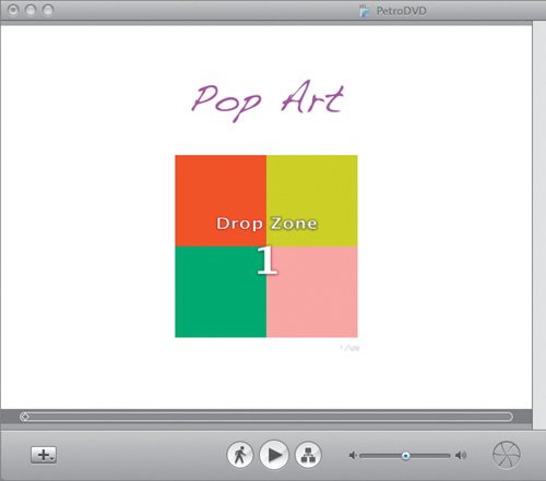 Now it should be clearer how your DVD is structured. The Map view is a good way to navigate your DVD while you're building it. It also gives you access to a unique option: You can set up an opening video (or slideshow) that will play as soon as the DVD is inserted into a playerbefore the opening menu appears. The first squarecalled an autoplay wellis built into the structure of the disc, and is presented to the left and connected to the main menuin this case, the Petroglyph Pop Art menu. The autoplay well is labeled PetroDVD. You can drag video or slideshows onto it to use as the opening sequence. If you want it to cycle endlessly until someone selects Play (as in a kiosk situation), choose Advanced > Loop Movie.