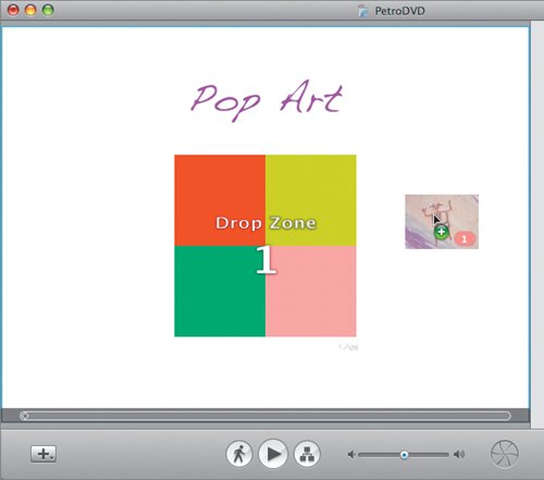 Like most theme templates, this one has a title on topwhich you can change simply by clicking it and typing a different title. (The typeface and size are set, though you'll shortly learn how to modify them.) There's also a space labeled as a drop zone. Drop zones are placeholders that may contain photos or movies.
