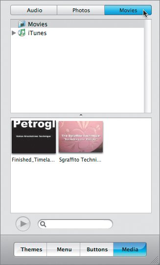 Note If you want to access QuickTime movies from locations on your Mac besides the Movies folder, you can expand your options through the iDVD Preferences (under the Movies tab), although this won't work for entire iMovie projects. It's generally best to keep everything in the Movies folder. When you load a DVD into a DVD player, usually the video doesn't begin playing right away. Instead, what you most often see is a menu that introduces you to the content on the disc. It might say what the disc is about, display what different videos it contains, and maybe give you options for accessing specific chapters within a video. The menu provides information and access, but it can also have personality.