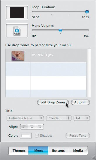 Up until this point in iDVD, you've alternated between Themes and Media. Now let's look at the other two buttons: Menu and Buttons.