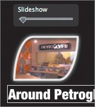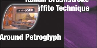 This template also has drop zones for many photographs or movies. But in each case, you can still see the links that connect to the time-lapse and sgraffito movies, as well as the Around Petroglyph slideshow. These links transfer regardless of theme.
