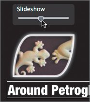 The controls at the bottom of the window let you specify how long each slide appears onscreen and what kind of transition you want between slides. The Settings button gives you additional control options.
