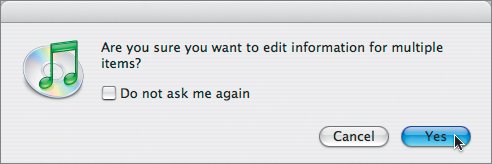 Since it's a little unusual to modify information for more than one track, iTunes will pop up a warning to make sure you intend to do this. If you're confident of your Mac skills, you could select "Do not ask me again"; however, it's a good rule to keep the safety on. Either way, click Yes in the warning window.