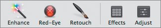 | iPhoto comes with some powerful tools for tweaking the images you take with your camera. In the Edit window, below the image, is a set of tools for adjusting images automatically and manually. On the right side is Effects, automatic controls that let you apply a handful of different styles to your photofor instance, to make your photos B&W or Sepia (antiqued-looking); and Adjust, manual controls for tweaking an array of image exposure settings (brightness, contrast, tint, and so on). In the middle are buttons for one-click "magic" image controls.  The most impressive of these tools is the simple power of Enhance. Making Changes With Enhance Let's go back to the fish image you just cropped. It's a little dark and not quite as crisp as it could be. 1. | If it is not there, click the thumbnail image to bring it to the center of the Edit window.