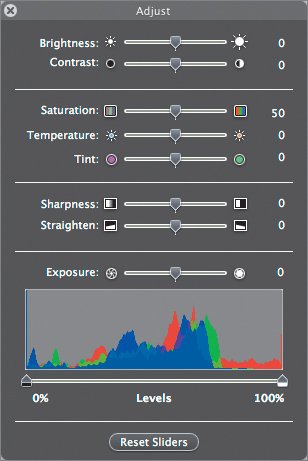 iPhoto does a quick analysis of your image and determines the best way to adjust brightness, contrast, color balance, and white balance in order to improve your image.