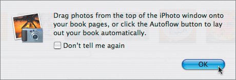 Before the window switches to the Book view, iPhoto lets you know you can lay out your book automatically by clicking the Autoflow button.