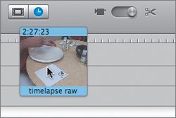 Note As discussed in Lesson 5, the way shots are currently presented in your workspace is called Timeline view. The alternative view is Clip view, which presents each shot as a single frame, like a photograph. While Clip view is quite useful for some projects, it is less useful for this time-lapse project.  | | | 5. | To scan through the clip, grab the playhead and drag it around in the timeline.