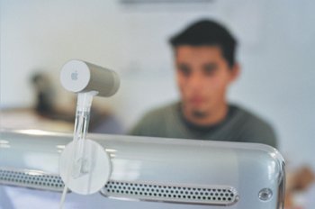 | A time-lapse video is really nothing more than a video created from a single camera shot, coming from a camcorder that is completely unmoving. If you don't have a camcorder and a tripod, but do have an iSight camera on your Mac, technically speaking, you have the same setup. If the iSight camera is affixed to a laptop, or built in, you can shoot anywhere your Mac can go. Point it out a window, at a construction site, whatever and wherever. But even sitting at a desk, you can use an iSight camera combined with iMovie and the techniques you learned to build a time-lapse video and create other kinds of projects. When Jennifer started her company a decade ago, she often set up a tripod and camcorder and recorded her thoughts, her process, the setbacks and accomplishments. If she'd had an iSight camera and iMovie, the process would have been considerably easier (not scattered among dozens of old VHS tapes). Charlie has decided to use his parents' setup to make a video journal for a class project. Because iMovie works with Apple's iSight camera as easily as it does with iPhoto and iTunes, you can use this videoconferencing camera as a typical video camera, record the video, and edit the results into a compelling document. Note A growing body of funsters are using iMovie and the iSight camera to shoot movies. Unlike recording to tape, shooting the material with the camera means it goes right into the editing software in one step. Charlie uses his parents' iSight setup on the family computer to keep a private series of thoughts on school and life. | | 1. | Make sure your iSight camera is set up and working.