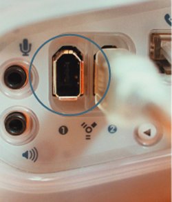 FireWire connectors: The smaller 4-pin side (left) and the D-shaped 6-pin side (right)   Note The common connector between a Mac and an external hard drive is a 6-pin-to-6-pin FireWire cable. | 2. | Make sure your camcorder is turned on and set to play back your tape.