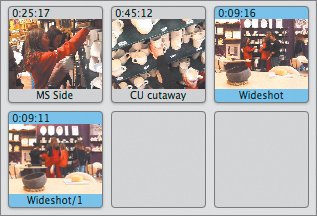 Medium shot, side view  Your role as a director is to get the bits of coverage you need. But your role as the editor of this video is to make the hard decisions about how to tell the story. We'll see how Christopher made his choicesbut you should realize there are no right or wrong answers. The problems you face here have many solutions. 1. | Select the wide shot and begin watching it in the Viewer.