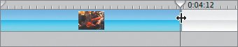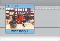 Tip Wide shots generally need to be onscreen a little longer than close-up shots in order for the audience to have time to "read" the image. There's a lot of detail in a wide shot, and it takes a few moments to look the frame over and satiate that need to know where you are, who is here, what is happening. A length of 4 or 5 seconds is usually better than 1 to 3 seconds. | | | 6. | Now that you've diced up the wide shot into a good piece and some trimmings, drag the good piece into your workspace.