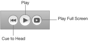Sometimes it's easier to watch clips and orient yourself in a video by switching to Timeline view and dragging the playhead around to watch a video. You can immediately cue to the first frame of your sequence by clicking the Cue to Head button before you click Play. You can also choose to watch your video full-screen (rather than in the Viewer) by clicking the Play Full Screen button (to the right of Play).