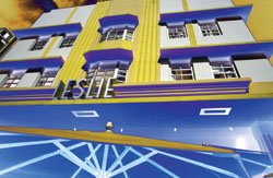 | By now you know where to find the adjustments, filters, and other features in Photoshop that help you enhance your pictures with creative and artistic effects. In this lesson I'd just like to show you some variations on a theme, along with instructions on how to get to the individual creative effects. For this lesson, I'll use a picture I took of the Leslie Hotel in Miami's South Beach (Figure 4.157). Let's look at a few of the endless possibilities you can explore in Photoshop. For each of these effects, I went back to the original image and used the default settings for each adjustment or filter, except for Neon Glow, for which I had the color yellow selected. Figure 4.157.