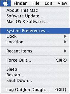 Figure 17.1. The Apple menu contains links to several operating system functions, including a shortcut to the System Preferences application.  | 2. | Click the Network icon.