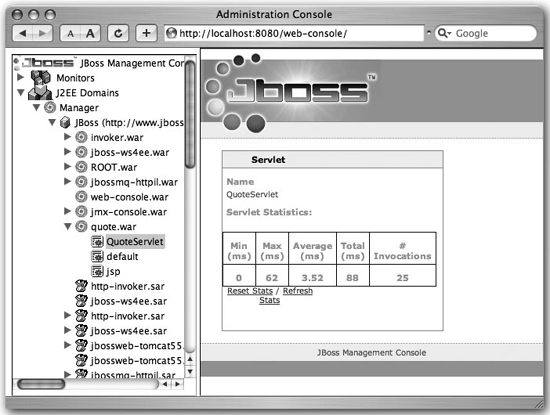 | Now, like all good things, our application's time in the limelight has to come to an end. It has served its purpose of entertaining and informing us and now we are ready to undeploy it. Let's see how to do that on JBoss. Developer's Notebook 2-7. Going up, up, up![]() How do I do that?If you deploy an application by placing it into the deploy directory, it stands to reason that undeploying should happen when you remove it from the deploy directory. Sure enough, that holds true. If you delete the quote.war file, JBoss notices this change and undeploys the application. You should get a notice such as this in the log: 08:56:13,629 INFO [TomcatDeployer] undeploy, ctxPath=/quote, warUrl=file:/ Users/samjr/jboss-4.0.2/server/default/tmp/deploy/tmp12813quote.war/ We've also provided an undeploy target that accomplishes this. As you can see, the build file is just deleting the file from the deploy directory: [quote]$ ant undeploy Buildfile: build.xml undeploy: [echo] In undeploy [delete] Deleting 1 files from /users/samjr/jboss-4.0.2/server/default/deploy BUILD SUCCESSFUL And that's it; the application is gone! This was just a simple web application; we'll move on to a more complete J2EE application in the next chapter. |