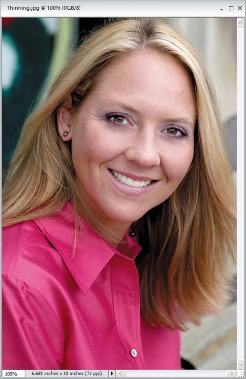 | This is an incredibly popular technique because it consistently works so well, and because just about everyone would like to look about 10 to 15 pounds thinner. I've never applied this technique to a photo and (a) been caught, or (b) not had clients absolutely love the way they look. The most important part of this technique may be not telling the client you used it. Step One©ISTOCKPHOTO