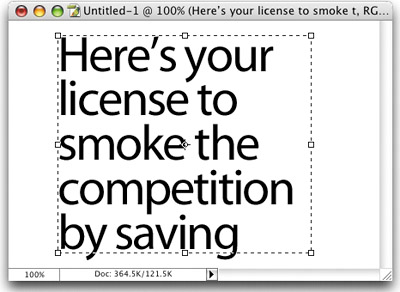 | This tip relates to a previous tip, where you created what's called a "text box" so that your type wraps within a text block, rather than running in one straight line. The tip is this: If you've created some standard type by just clicking and typing rather than creating a paragraph text block, you're not out of luck. While the Type layer is active, just go under the Layer menu, under Type, and choose Convert to Paragraph Text. Now your type will wrap within text box boundaries, and you can edit the boundaries by adjusting the corner and center points.
